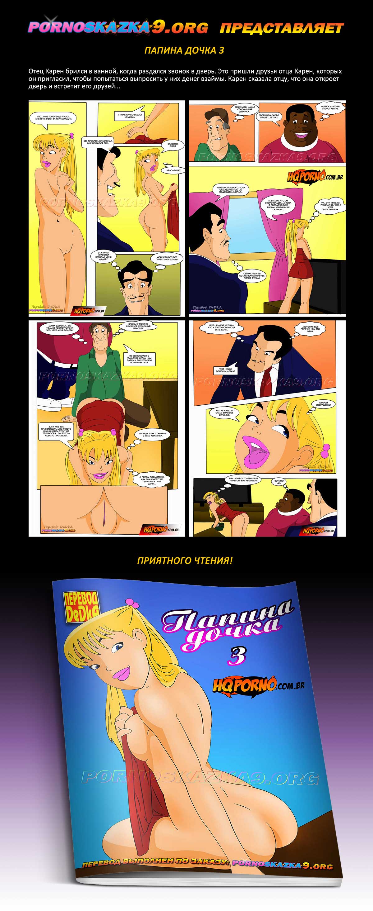 Порно комикс Папина дочка. Часть 3. Отец Карен брился в ванной, когда раздался звонок в дверь. Это пришли друзья отца Карен, которых он пригласил, чтобы попытаться выпросить у них денег взаймы. Карен сказала отцу, что она откроет дверь и встретит его друзей…
